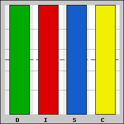 "D" is the highest on the chart. You are task-oriented and outgoing. The Exclamation Mark is your symbol. You are extremely gifted at getting tasks done quickly. By being a visionary, you achieve your goals through people. Next, notice that in your graph, the I area is above the midline. That means your I traits will support your primary type which is D. I traits are usually where you go under stress. Consider that some short-term solutions create long-term problems. The S and C areas in your graph are below the midline. These are blind spots in your life. Acting on these traits will accelerate your success and help you gain respect with others.